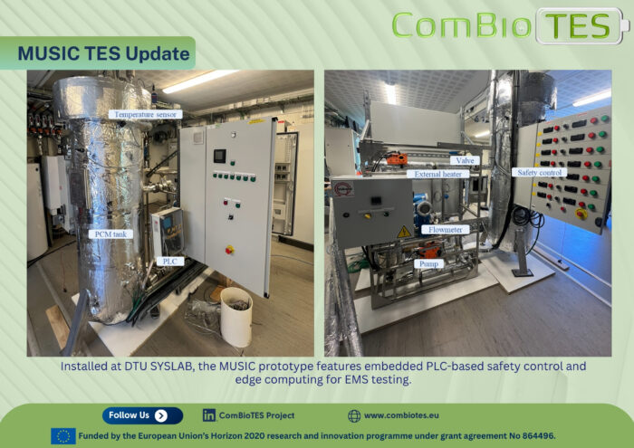 Following its successful manufacturing by DELAUNAY ET FILS, the MUSIC prototype has now entered a critical phase of development. After delivery to our partner CEA, the system underwent essential preparations including PCM filling, electrical wiring, and commissioning. With this milestone complete, the prototype has arrived at DTU – Technical University of Denmark, where the team has dived into two major testing campaigns.